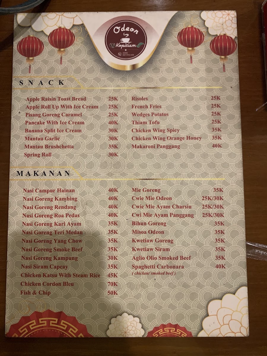 Odeon Kopitiam Menu